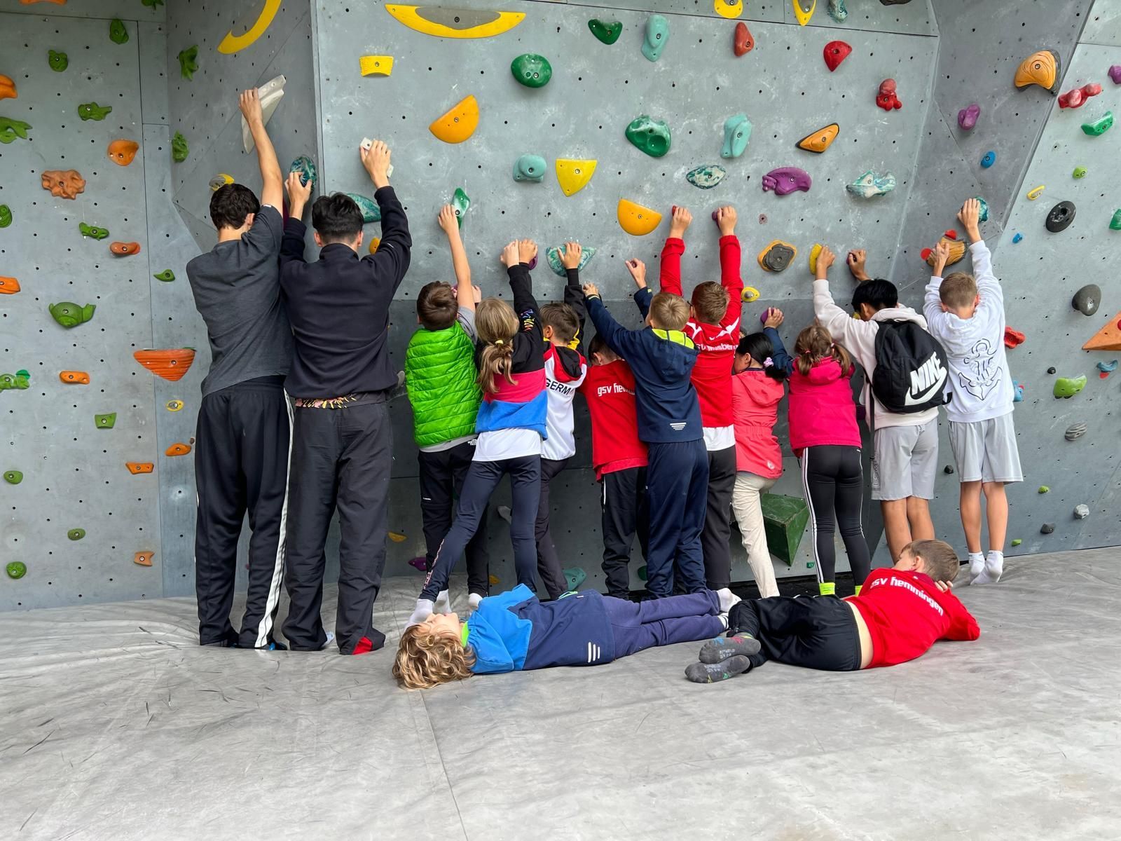 Die Sommerferien sind vorbei – endlich steht die schönste Zeit des Jahres wieder vor der Tür: die Skisaison! Zum Einstieg haben wir dieses Jahr ein Kondiwochenende im Allgäu organisiert. Da wir uns auf der Hütte selbst versorgt haben, stand für die Kids dieses Mal auch Küchendienst auf dem Plan. Das Wetter konnte uns die Laune beim Frühsport nicht vermiesen, zur Sicherheit sind wir am Samstag aber doch in Hallen ausgewichen: Vormittags zum Kondi- und Krafttraining, Nachmittags zum Bouldern. Die Eiswette (wer am weitesten klettern kann, bekommt ein Eis spendiert) hat das Bouldern zum Highlight werden lassen. Kicken auf dem Sportplatz hat den Tag abgerundet. Um perfekt vorbereitet in die Skisaison zu starten, haben wir uns Sonntags die Saisonkarten gekauft, und uns bei einer Wanderung auf den Berg wieder das Bergfeeling geholt. Ein großer Dank geht an alle Helfer, Essenslieferanten und spontanen Köche für den Einsatz! Fazit: Viel Spaß und Kraft, und nun wir sind bereit und freuen uns auf den Skistart am 3.10!