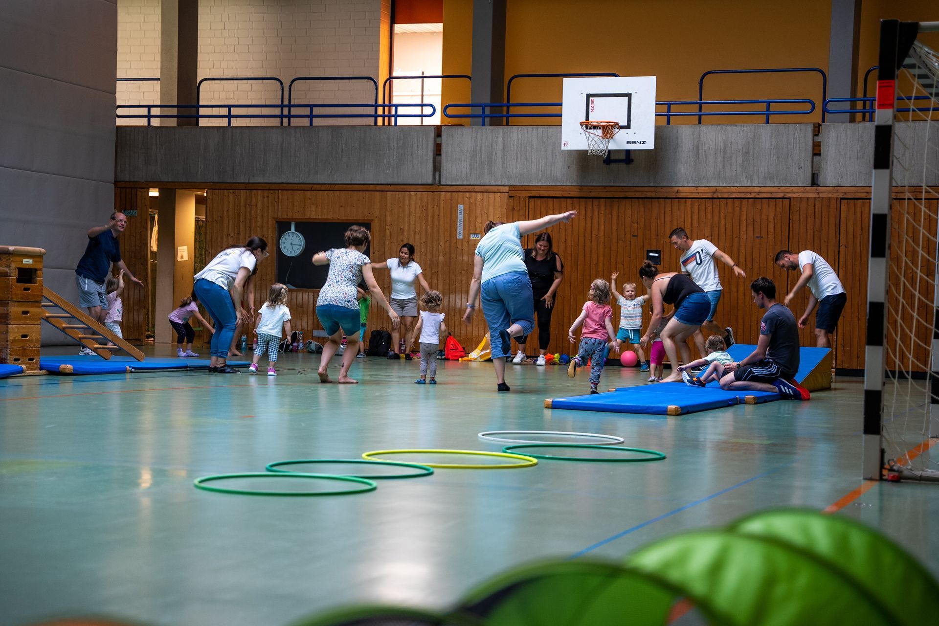 Dienstags findet bei Jessi Königer, Carmen Herrmann und Christine Kohler das Eltern-Kind-Turnen und das Kinderturnen statt. Schwerpunkt liegt hier auf Motorik-, Koordinationsschulung sowie Beweglichkeit. Sportspiele runden die Stunden fachmännisch ab.