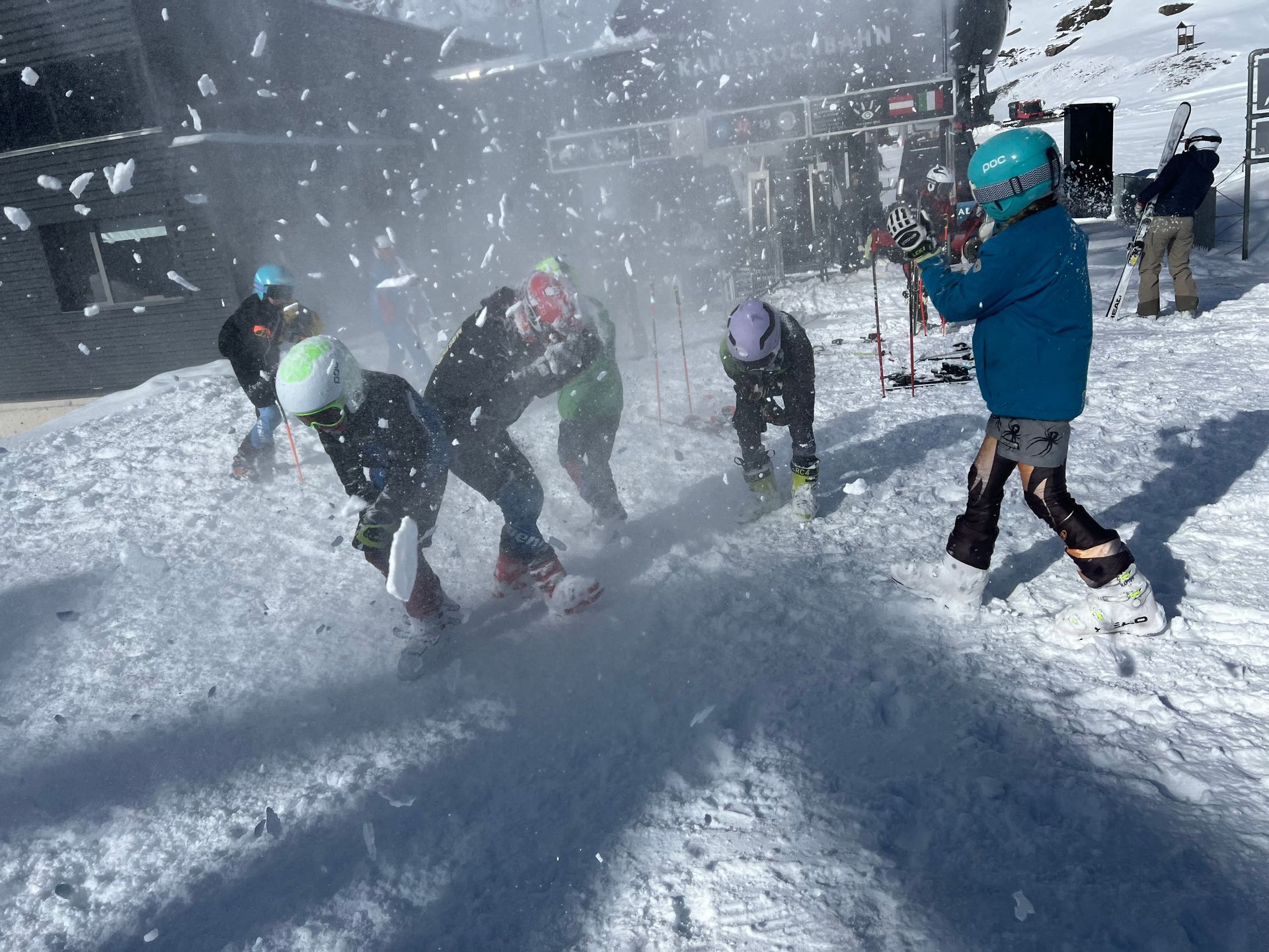 Wir wurden nicht enttäuscht, und unser frühes Aufstehen (Abfahrt zum Gletscher war 7:10 Uhr) wurde belohnt. Wir wurden von strahlendem Sonnenschein und Powder auf den Pisten empfangen.